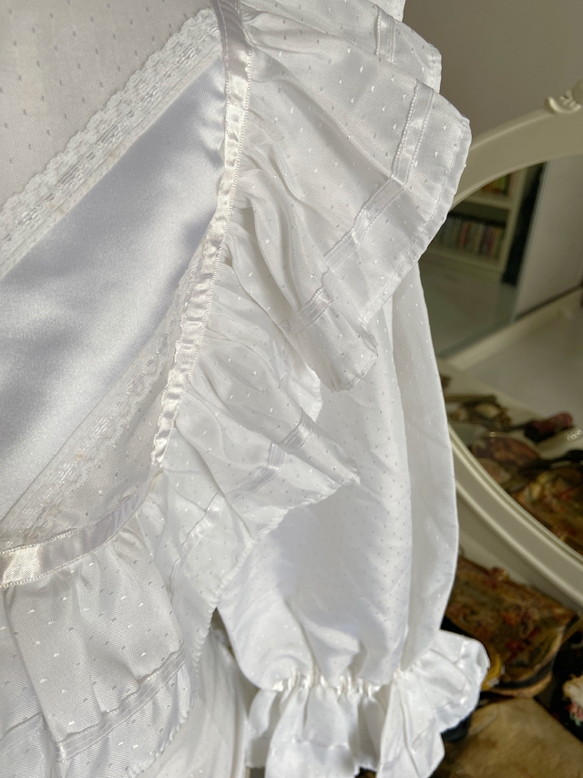 Blusa estilo vitoriano vintage, lindíssima, rica em detalhes. Renda, cetim, textura no tecido... mangas bufantes, possui um mini amarelado que não saiu com a curadoria, passa despercebido, veja na última foto.