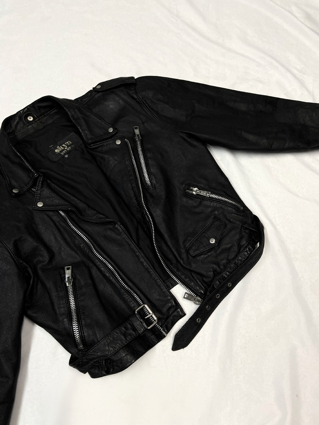 Biker/perfecto em couro legítimo vintage dos anos 80/90. Ela é uma das mais procuradas aqui no brechó e consideramos uma raridade pois é muito difícil encontrar várias nesse modelo, dessa vez demos sorte porém é peça única! Passou por restauração e hidratação porém nas costas próximo ao ombro possui leves marcas de onde o couro ressecou, praticamente não aparece no uso (ver penúltima foto). A base de preço dessa jaqueta pode passar de R$3 mil na loja e R$1500 usada dependendo do modelo, marca e estado de conservação!