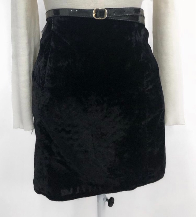 Saia de veludo preta Tamanho 34/36 Medidas: Cintura 72cm Comprimento 41cm Quadril 88cm Semi nova, na última foto mostra uma pequena marquinha, mas não se nota porque ela é de veludo